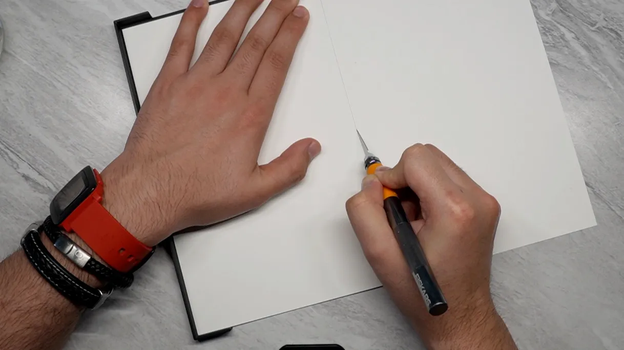 - Fold over the long edges of the cover sheet onto the boards. Mark their outlines on the boards with a pencil.