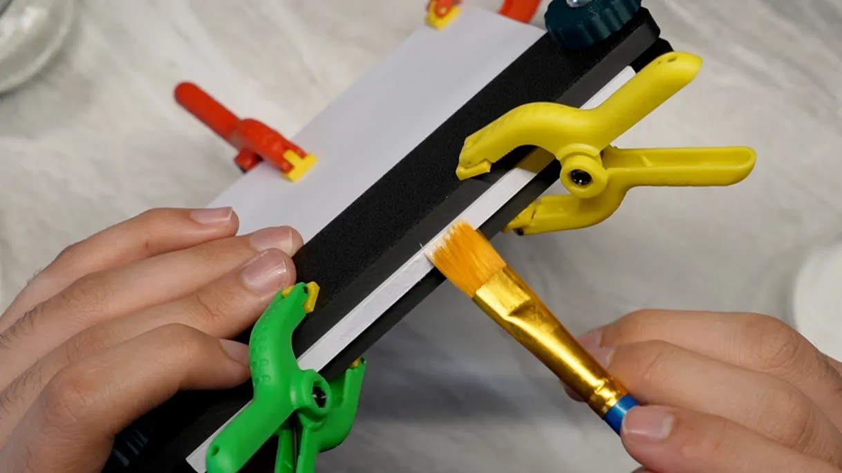 - Apply another coat of PVA and let dry. Wash the brush with IPA and dry as soon as the glue is applied.